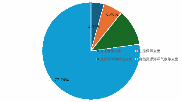 2024年度财政拨款支出205.08万元,主要用于以下方面:社会保障和就业支出24.58万元,占财政拨款支出比例12%;卫生健康支出8.88万元,占财政拨款支出比例4.3%;自然资源海洋气象等支出158.51万元,占财政拨款支出比例77.3%;住房保障支出13.12万元,占财政拨款支出比例6.4%